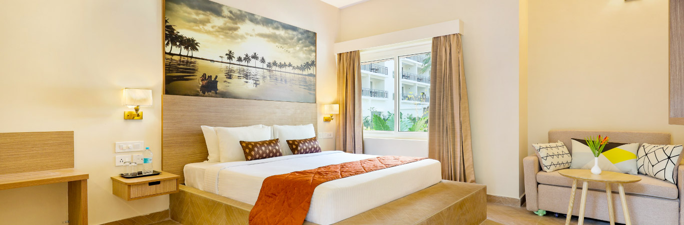 A Club Mahindra Managed Resort Let us set the scene: a cool breeze swoops over the backwaters, creating silky ripples. It flutters through the fringed coconut leaves. As you step into our Club Mahindra Arookutty Alleppey Resort in Alappuzha, it ruffles your hair playfully. This is the charm of our resort in Alleppey. Located right next to the famous backwaters, framed by swaying coconut trees, and surrounded by lush lawns, our Alleppey resort in Kerala is your next holiday abode. Spread over 4.3 acres, this is the perfect location for a wedding, a big birthday bash, or a family getaway. Sign up for resort experiences. Explore the quiet backwaters in a houseboat. Sample fresh seafood and vegetable curries at the restaurant. Step into the past at Fort Cochin. The allure of Alleppey and Club Mahindra is endless.