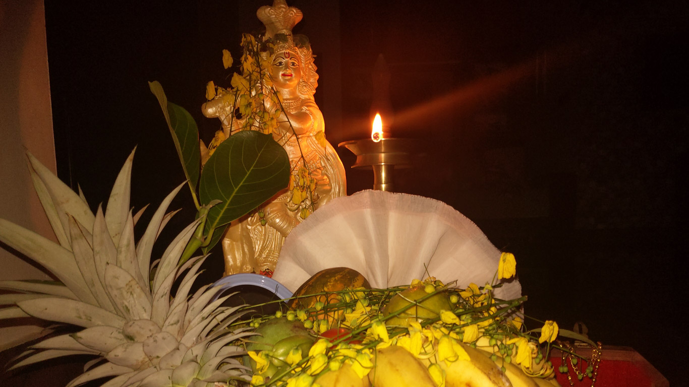 Vishu, the Malayali New Year, is celebrated with grand festivities. The highlight is Vishukani which involves seeing auspicious things like rice, vegetables, flowers, betel leaves, coins, a mirror and other things on waking up. Lights, firecrackers and ne