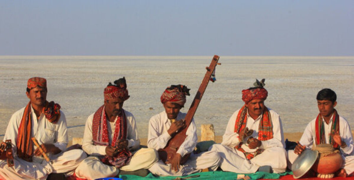 With several nomadic tribes bringing their own intrinsic flavours to the region, a unique form has evolved as Kutchi music. The folk songs ring through the air to create a festive mood in the area. Various instruments bring alive the cultural heritage of the Rann of Kutch: from the tabla, to the shehnai, the mini cymbals in manjiras, the haunting flute, and percussion specials in the damaru and dholak. Discover the bhorrindo here in the Kutch. It is a quirky, musical instrument specific to the Kutch region. Our desi rendition of the didgeridoo, and emits a sound similar to the wind instruments. The entire air is redolent with song and music.