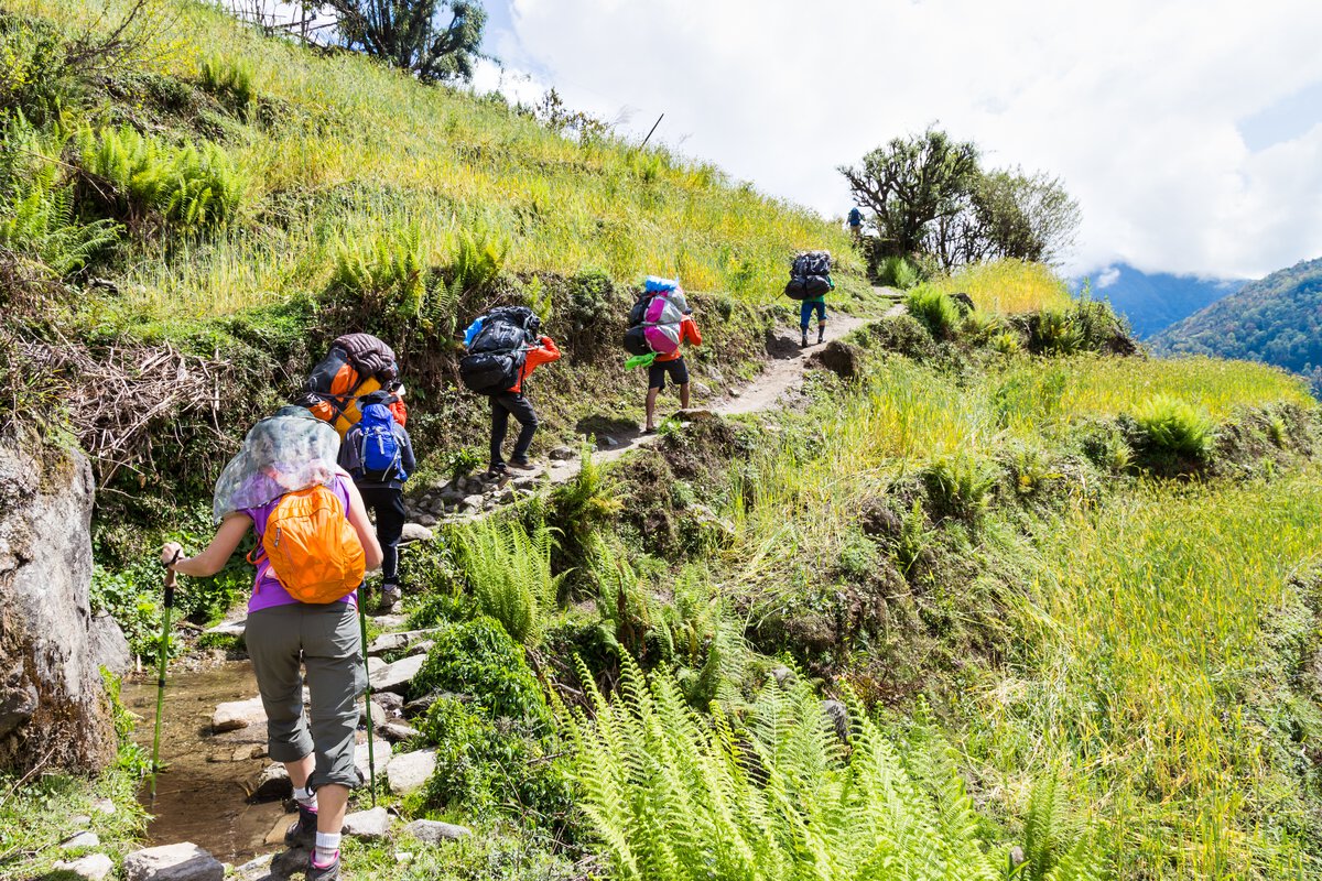 Along the way, the trail is adorned with a profusion of Rhododendron trees, painting the landscape in shades of red, pink, and white during the blooming season. As trekkers go through the lush forests and alpine meadows, they are rewarded to stunning views of towering peaks such as the majestic Kanchenjunga.Â