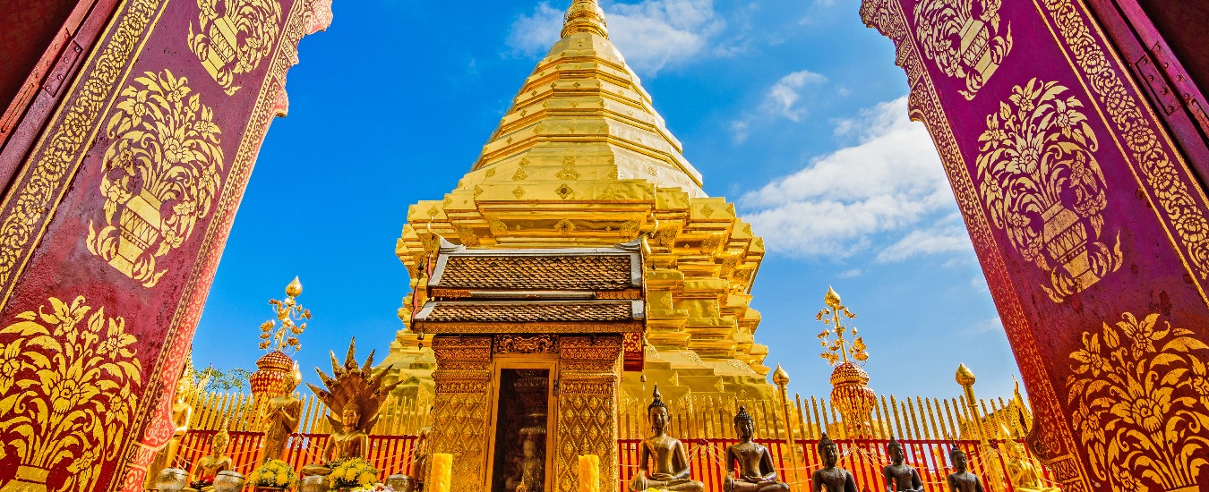 Overlooking the city from its mountain throne, Wat Phra That Doi Suthep is one of the most sacred temples in northern Thailand. The wát is a stunning example of northern Thai architecture. Featuring a 306-step staircase, Doi Suthep is flanked by naga (mythical sea serpents), and the climb leading to it is intended to help devotees earn Buddhist merit.