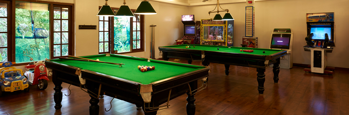 The indoor activity center is a perfect place to enjoy activities like board games, shooting, pool and video games.