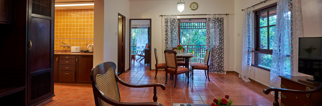 A Club Mahindra Managed Resort Coorg is famously known as the ‘Scotland of India’. Nestled in this paradise is Madikeri, a picturesque hill station that is also the capital of Coorg. The wooded slopes, colourful scenery and rugged landscapes of Madikeri will leave you speechless. The timeless beauty of this place will take you back to your good old days and even a week’s holiday will seem insufficient. Set amidst this scenic background is Club Mahindra Madikeri, Coorg.Built in the traditional ‘aina mane’ style, this resort is nestled within an aromatic coffee plantation. Its plush rooms are adorned with all the modern amenities to make your stay a relaxing one.This sprawling resort also boasts a gym, two swimming pools, three restaurants, a lobby lounge and bar, a Holiday Activity Centre, a spa complex and much more. So, get ready for a fun-filled vacation at Madikeri!