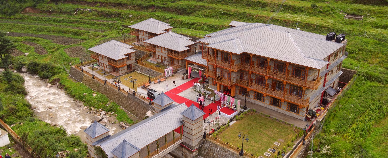 Cradled in the hush of Himalayan pines, the rooms at our resort in Janjehli are artfully conceived sanctuaries of elegance. Choose from elegant hotel units or expansive studio rooms, many featuring private balconies that open to panoramic views of cedar-lined hills and drifting mist. Each space is adorned with warm wood finishes, tasteful furnishings, and modern touches—flat-screen TVs, indulgent bedding, sleek bathrooms, and thoughtfully equipped kitchenettes.